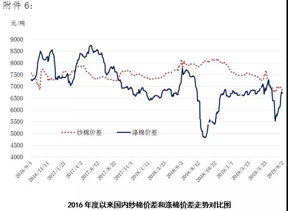國際棉價延續(xù)弱勢。本周美聯(lián)儲十年來首次宣布降息,美股不漲反跌,意味著全球經(jīng)濟下行壓力增加,投資者預計本次降息可能不會提振經(jīng)濟增長。7月主要經(jīng)濟體制造業(yè)PMI再次下滑,進一步暗示經(jīng)濟慘淡,商品市場面臨壓力。國際棉花市場方面,國際棉花咨詢委員會(ICAC)8月全球產(chǎn)需預測認為,2019/20年度全球棉花產(chǎn)量2724萬噸,同比增加6.0%,消費量2689萬噸,同比僅增加0.8%,全球產(chǎn)大于需35萬噸。截至2019年7月25日印度新棉播種已完成1089.5萬公頃,同比增長6.8%;美棉生長繼續(xù)加快,截至2019年7月28日美國棉花生長狀況達到良好以上的61.0%,較去年同期增加18個百分點,假如不出現(xiàn)極端天氣,市場增產(chǎn)預期不斷加強。消費方面,全球經(jīng)濟增長放緩導致全球棉紗需求出現(xiàn)衰退,2019年2季度印度棉紗出口總量同比減少一半;2019年6月中國進口棉紗同比減少19.9%,全球棉花供應增加和需求增長放緩令棉價承壓。特朗普聲稱將對中國加征關稅,導致ICE期棉價格跌破60美分/磅。貿易緊張形勢下,預計短期內國際棉價延續(xù)弱勢,還需繼續(xù)關注北半球天氣變化。