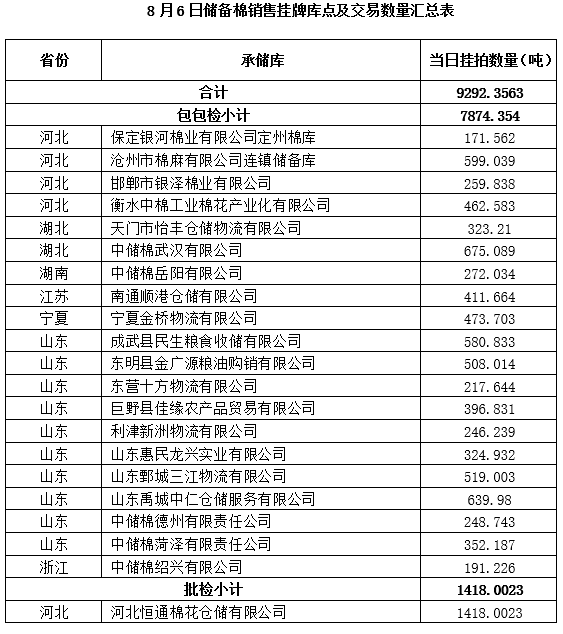 附件:1.8月6日上市銷售儲(chǔ)備棉數(shù)據(jù)明細(xì)表(包包檢)