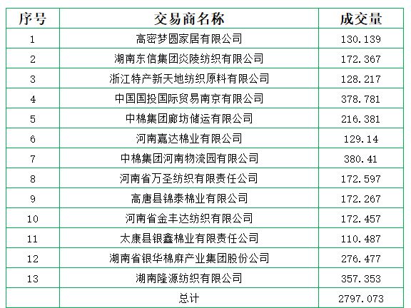新疆棉成交均價(jià)12110元/噸,新疆棉折3128價(jià)格13373元/噸,新疆棉加價(jià)幅度82元/噸。