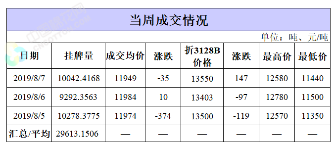 截至8月7日累計(jì)輪出銷售資源72.60萬(wàn)噸,成交最高價(jià)15930元/噸,成交最低價(jià)11350元/噸。