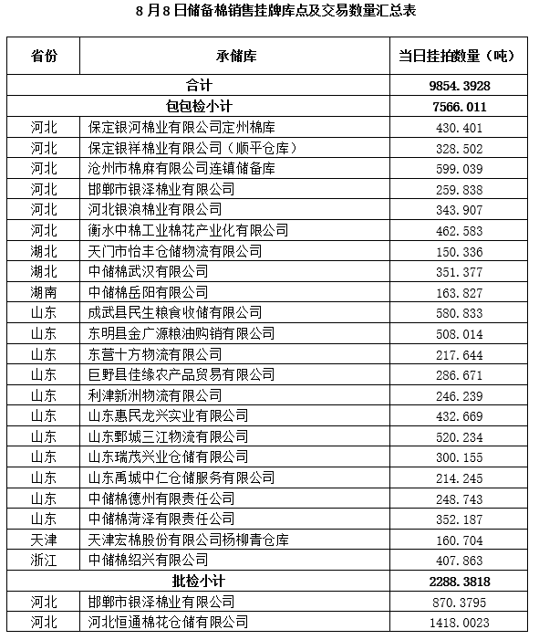 附件:1.8月8日上市銷售儲(chǔ)備棉數(shù)據(jù)明細(xì)表(包包檢)