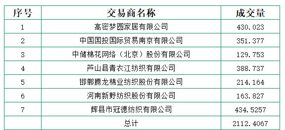 新疆棉成交均價12305元/噸,新疆棉折3128價格13356元/噸,新疆棉加價幅度65元/噸。