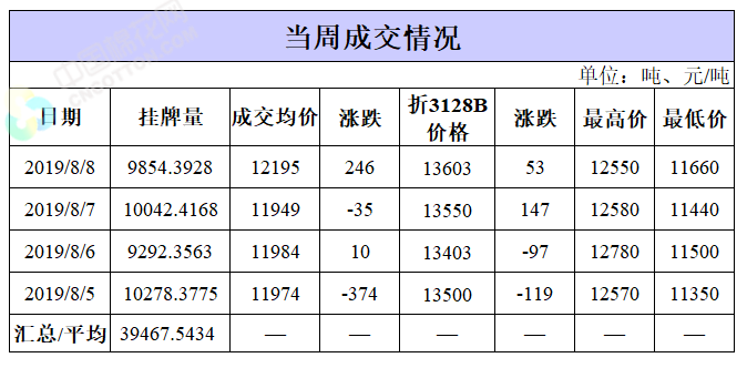 截至8月8日累計輪出銷售資源73.59萬噸,成交最高價15930元/噸,成交最低價11350元/噸。
