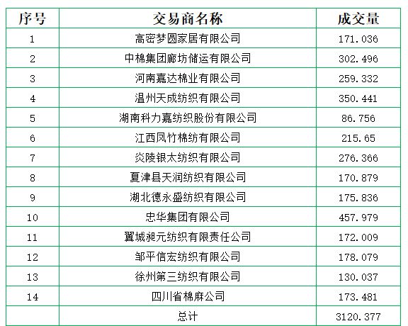 新疆棉成交均價12196元/噸,新疆棉折3128價格13576元/噸,新疆棉加價幅度285元/噸。