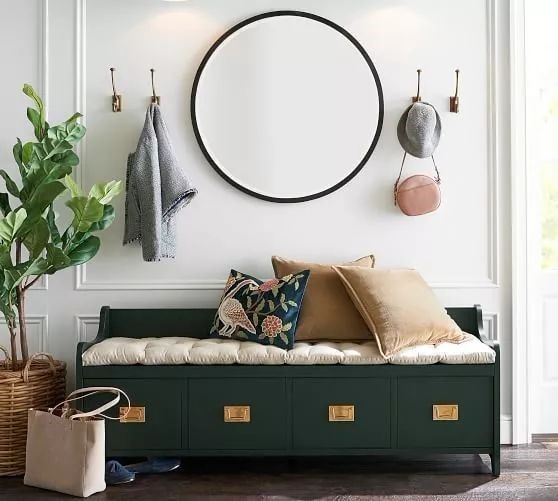 換鞋、脫大衣的柜面/凳子,不需要占據(jù)太多地方,夠2個(gè)人坐的尺寸即可,亞麻墊坐著夠舒服,越看越耐看,這種設(shè)計(jì)也不容易過時(shí)。