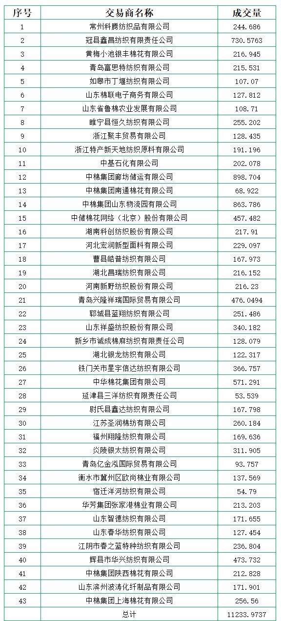 新疆棉成交均價(jià)12154元/噸,新疆棉折3128價(jià)格13382元/噸,新疆棉加價(jià)幅度638元/噸。