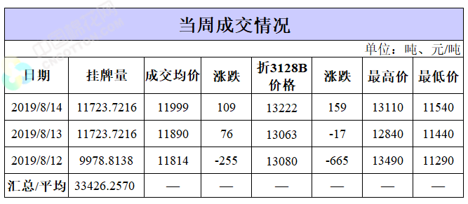截至8月14日累計(jì)輪出銷售資源77.93萬噸,成交最高價(jià)15930元/噸,成交最低價(jià)11290元/噸。