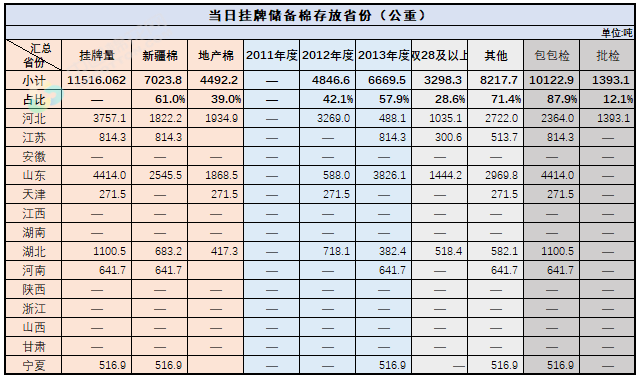 中國儲(chǔ)備棉管理有限公司定于8月19日上市銷售儲(chǔ)備棉重量11516.0615噸,共59捆。
