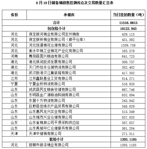 附件:1.8月19日上市銷售儲(chǔ)備棉數(shù)據(jù)明細(xì)表(包包檢)
