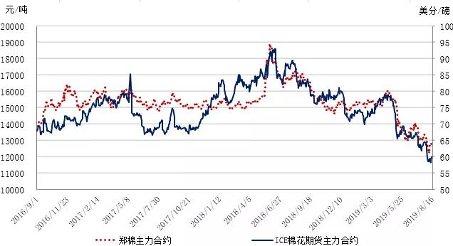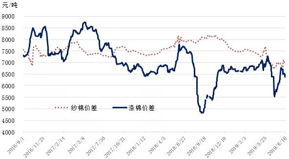 國內棉價繼續(xù)承壓弱勢運行。隨著國際環(huán)境復雜嚴峻和國內經(jīng)濟下行壓力加大,紡織工業(yè)和消費回落,7月規(guī)模以上紡織工業(yè)增加值同比增長1.2%,較6月份回落0.4個百分點,服裝鞋帽、針紡織品類額同比增長2.9%,較6月回落2.3個百分點。國內棉花市場方面,據(jù)國家棉花市場監(jiān)測系統(tǒng)數(shù)據(jù)顯示,截至2019年8月16日,2018/19年度全國棉花銷售率為81.6%,同比下降11個百分點,全國尚有約112.3萬噸新棉待售(產(chǎn)量610.5萬噸),鄭棉倉單49萬噸,較前周下降2.5萬噸,較上年同期多7.3萬噸;2018/19年度還剩不足1個月,按每月消費量66.5萬噸測算,當前供過于求局面明顯。9月初新棉采摘開始,季節(jié)性供應隨即增加。目前棉企還貸期限將至,不排除棉企讓利拋庫情況。下游紡織市場仍無起色,產(chǎn)成品庫存仍處高位,大部分織廠秋冬季訂單不及去年,原料備貨不積極,據(jù)國家棉花市場監(jiān)測系統(tǒng)調查數(shù)據(jù)顯示,8月初被抽樣調查企業(yè)紗、布產(chǎn)銷率分別比近3年同期平均水平低3.2、5.5個百分點;庫存分別比近3年同期平均水平高12.4天、11.4天。隨著中美貿(mào)易局勢反復發(fā)酵,市場情緒階段性波動,對紡織服裝出口前景整體持悲觀態(tài)度,棉花行情可能繼續(xù)承壓弱勢運行。