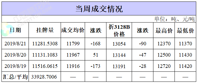 截至8月21日累計輪出銷售資源83.59萬噸,成交最高價15930元/噸,成交最低價11290元/噸。