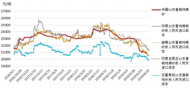 三、國內(nèi)外棉紗價(jià)格持續(xù)走低
