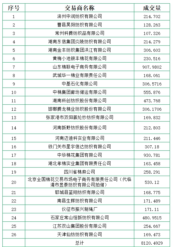 新疆棉成交均價(jià)11530元/噸,新疆棉折3128價(jià)格12875元/噸,新疆棉加價(jià)幅度188元/噸。