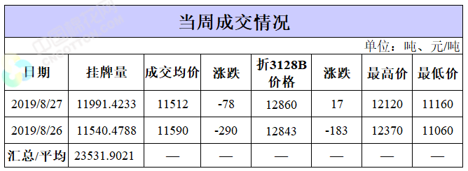 截至8月27日累計(jì)輪出銷售資源88.25萬噸,成交最高價(jià)15930元/噸,成交最低價(jià)11060元/噸。