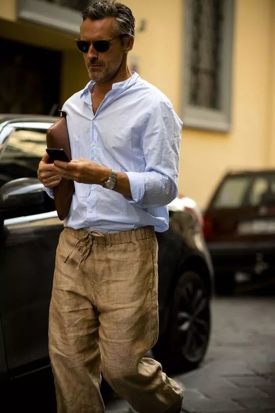 亞麻男裝搭配技巧,最重要的一條就是干凈、利落,包括衣服的整潔,以及顏色不要太花哨,簡簡單單最得體。