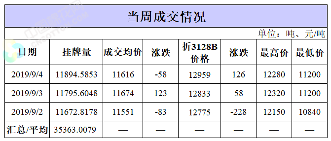 截至9月4日累計(jì)輪出銷售資源95.23萬噸,成交最高價(jià)15930元/噸,成交最低價(jià)10750元/噸。