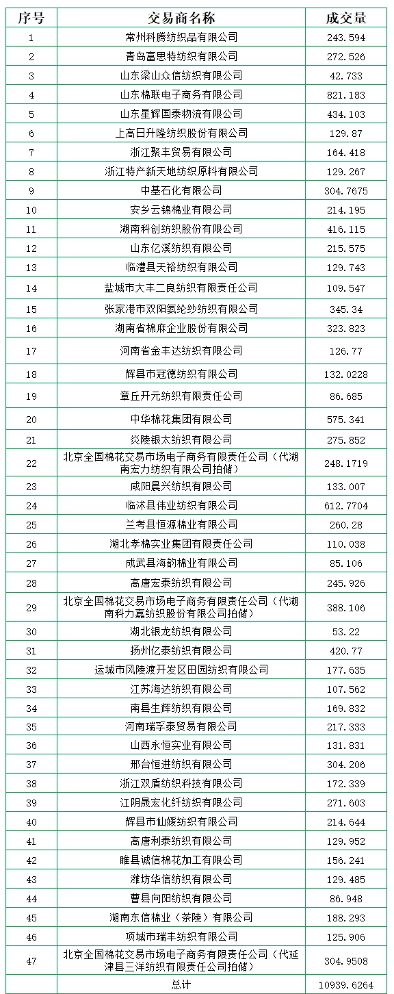 新疆棉成交均價(jià)11740元/噸,新疆棉折3128價(jià)格13189元/噸,新疆棉加價(jià)幅度854元/噸。
