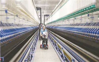 2019年1月11日,工人在山東鄒平市魏橋紡織公司智能化車間對(duì)生產(chǎn)線進(jìn)行巡檢。魏橋紡織上線“紡織+AI”人工智能車間,安裝15萬個(gè)傳感器的生產(chǎn)線上,排列整齊的各色設(shè)備運(yùn)轉(zhuǎn)有序,高科技改變傳統(tǒng)生產(chǎn)模式。
