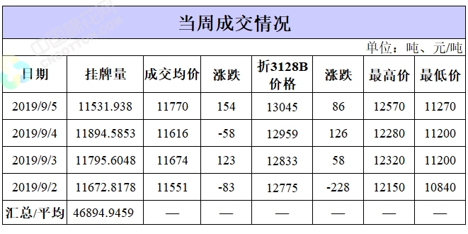 截至9月5日累計輪出銷售資源96.38萬噸,成交最高價15930元/噸,成交最低價10750元/噸。