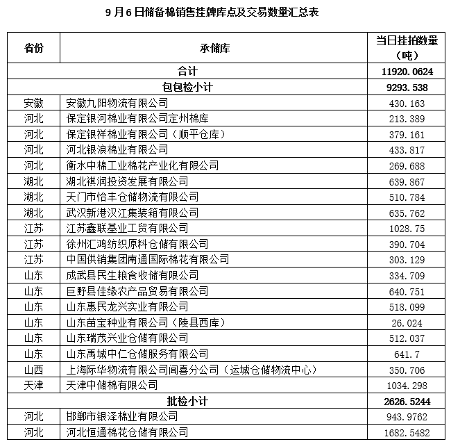 附件:1.9月6日上市銷(xiāo)售儲(chǔ)備棉數(shù)據(jù)明細(xì)表(包包檢)
