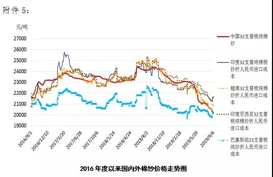 國際棉價(jià)上漲空間受限。受歐洲央行降息并重啟更大規(guī)模刺激計(jì)劃帶動(dòng),下周美聯(lián)儲(chǔ)、日本、瑞士、英國、巴西、印尼、挪威、南非等多國央行央行也面臨艱難抉擇,貿(mào)易局勢(shì)拖累全球經(jīng)濟(jì)或?qū)⒂瓉硭ネ撕驼{(diào)整,加大了棉花等大宗商品價(jià)格波動(dòng)。國際棉花市場(chǎng)方面,目前印度旁遮普邦第一批新棉上市,在最低收購(MSP)未實(shí)施之前,短期印度棉價(jià)將承壓;近期美國得州南部新棉也開始上市,截至本周,美棉檢驗(yàn)量達(dá)到424894包,而且單產(chǎn)創(chuàng)近幾年的最高水平,目前美國棉區(qū)維持干熱天氣,新棉加快成熟。據(jù)美國農(nóng)業(yè)部發(fā)布的9月份全球產(chǎn)需預(yù)測(cè),2019/20年度美棉產(chǎn)量476萬噸,同比增加19.03%,全球棉花產(chǎn)量同比增加4.92%至2719.4萬噸,消費(fèi)量2650.7萬噸,同比增速由上月的2%放緩至1%。全球棉花豐產(chǎn)預(yù)期下,貿(mào)易不確定性拖累消費(fèi)難以改善。9月5日一周,2019/20年度美國陸地棉凈簽約量為1.69萬噸,較前周減少54%,中國毀約增加;各國棉紗內(nèi)銷和外銷訂單無明顯改善,市場(chǎng)觀望居多?;久鏌o利好情況下,國際貿(mào)易的不確定性成為壓制棉價(jià)走勢(shì)的主導(dǎo)因素,美國農(nóng)業(yè)部預(yù)計(jì)2019/20年度美國陸地棉農(nóng)場(chǎng)均價(jià)為58美分,環(huán)比下降2美分。短期內(nèi)需警惕特朗普講話及收獲季天氣變化風(fēng)險(xiǎn)都將引起市場(chǎng)風(fēng)波。