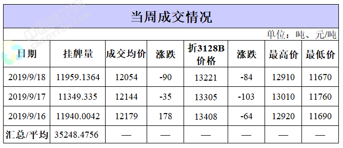 截至9月18日累計(jì)輪出銷售資源105.86萬噸,成交最高價(jià)15930元/噸,成交最低價(jià)10750元/噸。