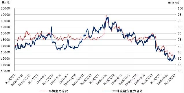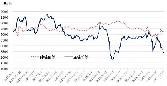 國(guó)內(nèi)棉價(jià)謹(jǐn)慎觀望為主。據(jù)國(guó)家統(tǒng)計(jì)局?jǐn)?shù)據(jù)顯示,8月規(guī)模以上紡織工業(yè)增加值同比增長(zhǎng)0.1%,較7月份回落1.1個(gè)百分點(diǎn),1-8月規(guī)模以上紡織業(yè)固定投資同比下降5%,創(chuàng)2009年2月以來(lái)新低,連續(xù)3個(gè)月負(fù)增長(zhǎng)。國(guó)內(nèi)棉花市場(chǎng)方面,據(jù)國(guó)家棉花市場(chǎng)監(jiān)測(cè)系統(tǒng)調(diào)查數(shù)據(jù)顯示,2019/20年度國(guó)內(nèi)棉花總產(chǎn)量預(yù)計(jì)616萬(wàn)噸,同比增長(zhǎng)0.9%,其中新疆棉花產(chǎn)量526.6萬(wàn)噸,同比增長(zhǎng)3.2%。目前國(guó)內(nèi)新棉零星采摘收購(gòu),阿克蘇地區(qū)手摘棉價(jià)格5.3-5.6元/公斤,相比去年的6.5-6.8元/公斤下跌1.2元/公斤。新疆喀什報(bào)價(jià)穩(wěn)定5.6-5.8元/公斤;奎屯、巴楚報(bào)價(jià)6.1-6.3元/公斤,較開(kāi)秤初期略顯上漲。目前大部分企業(yè)新棉加工、銷售尚未開(kāi)始,收購(gòu)價(jià)格尚不具代表性。預(yù)計(jì)10月初,新棉將大量上市,收購(gòu)價(jià)格將逐漸明朗。新棉上市壓力下,鄭棉倉(cāng)單加快流出,截至9月20日鄭棉倉(cāng)單43萬(wàn)噸,較9月初減少4萬(wàn)噸。短期內(nèi)季節(jié)性供應(yīng)壓力增加。下游紡織市場(chǎng)短暫回暖后重回弱穩(wěn),秋冬節(jié)日訂單不及預(yù)期,內(nèi)外需下滑,8月國(guó)內(nèi)服裝鞋帽紡織類零售額同比增長(zhǎng)5.2%,較去年同期放緩1.8個(gè)百分點(diǎn),紡織品服裝出口額同比下降4.95%。受中美貿(mào)易摩擦影響,棉紡織服裝產(chǎn)業(yè)需求端短期難以改善,市場(chǎng)受中美貿(mào)易消息反復(fù)波動(dòng),新花大量上市供應(yīng)壓力來(lái)臨,國(guó)內(nèi)棉價(jià)很難擺脫弱勢(shì)局面。近期關(guān)注籽棉收購(gòu)價(jià)格和棉籽價(jià)格變化。