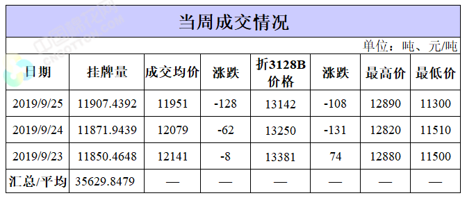 地產(chǎn)棉成交均價(jià)11587元/噸,地產(chǎn)棉折3128價(jià)格12990元/噸,地產(chǎn)棉加價(jià)幅度270元/噸。