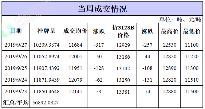 截至9月27日累計(jì)輪出銷售資源113.93萬噸,成交最高價(jià)15930元/噸,成交最低價(jià)10750元/噸。