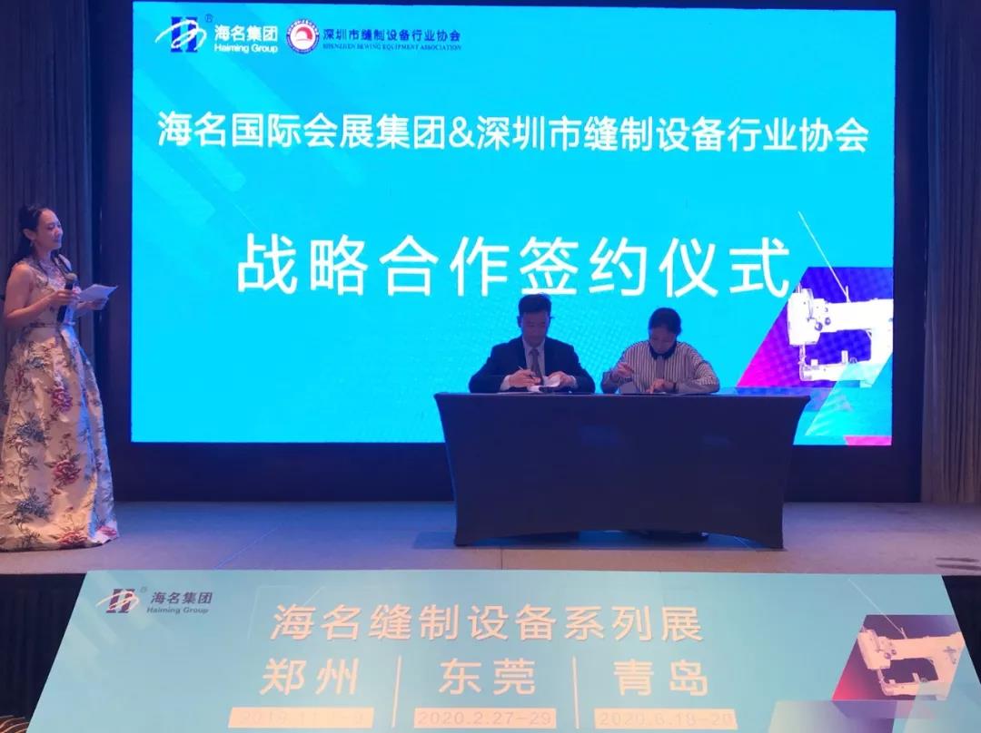發(fā)布會尾聲,青島海名國際會展有限公司第一公司總經理韓梅女士與深圳市縫制設備行業(yè)協(xié)會秘書長朱媧先生現(xiàn)場簽訂戰(zhàn)略合作協(xié)議,未來雙方將深入合作,協(xié)同企業(yè)及協(xié)會資源優(yōu)勢,推動企業(yè)品牌化、創(chuàng)新化發(fā)展,共創(chuàng)互惠互利新局面。