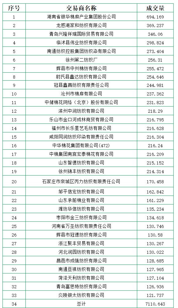 新疆棉成交均價(jià)11893元/噸,新疆棉折3128價(jià)格13174元/噸,新疆棉加價(jià)幅度592元/噸。