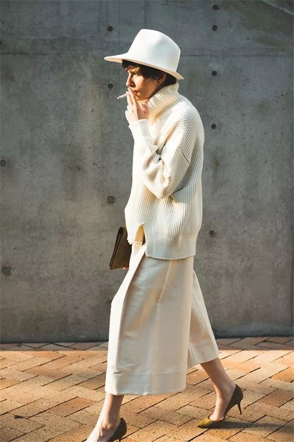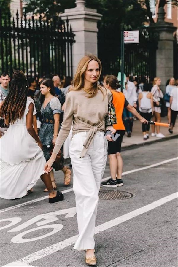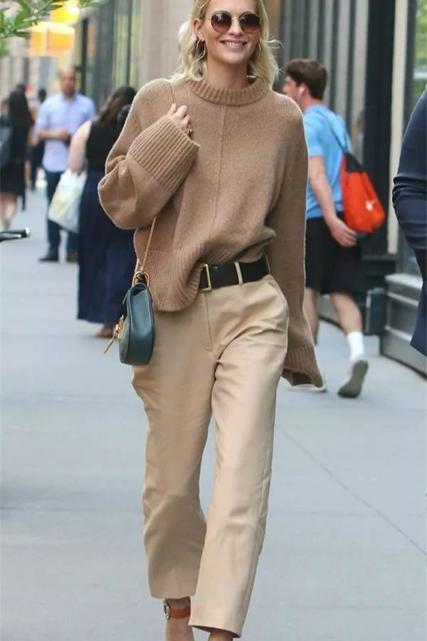 大地色系的毛衣,配純白亞麻褲,專(zhuān)業(yè)入秋、不忘精致,時(shí)髦度也是妥妥地!