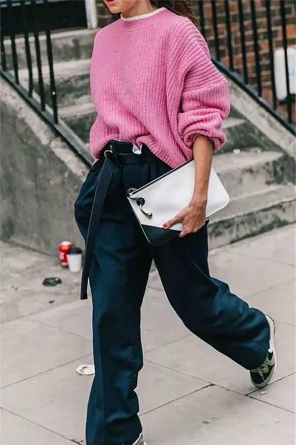 毛衣配亞麻褲的街頭風(fēng)格有型又有范兒,有種低調(diào)的帥氣感,運(yùn)動(dòng)鞋或多出的一截皮帶點(diǎn)亮整體,帶著少女心!
