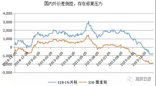 截至本周三,國內(nèi)328棉花價格指數(shù)與M級進口棉滑準稅下港口提貨價指數(shù)的價差高達近-2000元/噸,該價差從8月初開始倒掛;與M級進口棉1%關(guān)稅下港口提貨價指數(shù)的價差為-800元/噸,該價差國慶節(jié)后開始倒掛。較大的倒掛價差有修復的壓力,迫使國內(nèi)外棉價靠攏,支撐鄭棉價格。