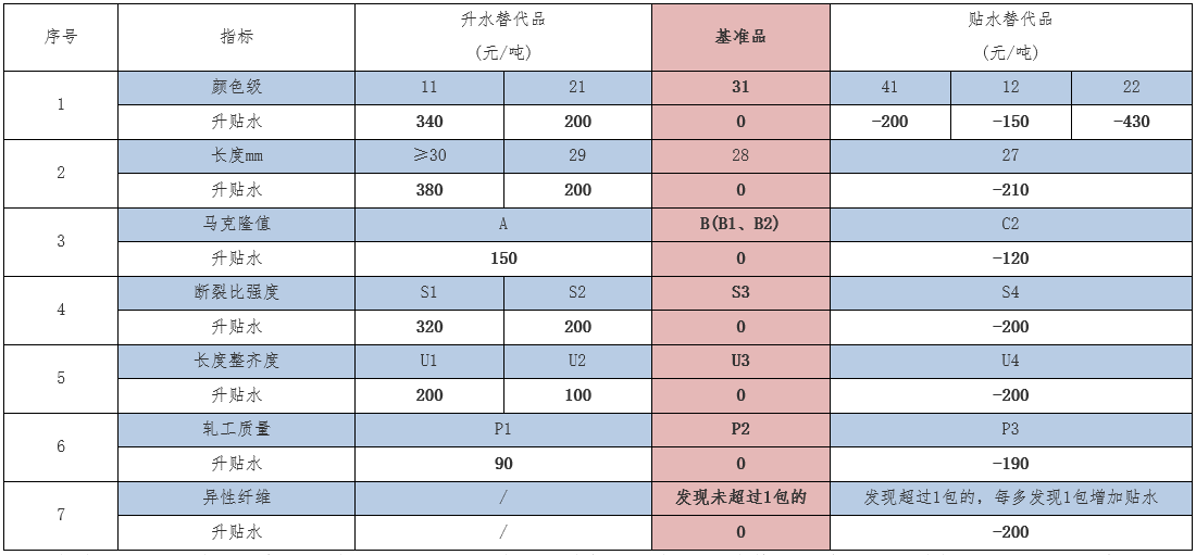 經(jīng)研究決定,現(xiàn)對(duì)棉花期貨替代交割品升貼水調(diào)整公告如下(見(jiàn)下表),自2020/21年度生產(chǎn)的棉花開(kāi)始實(shí)施。