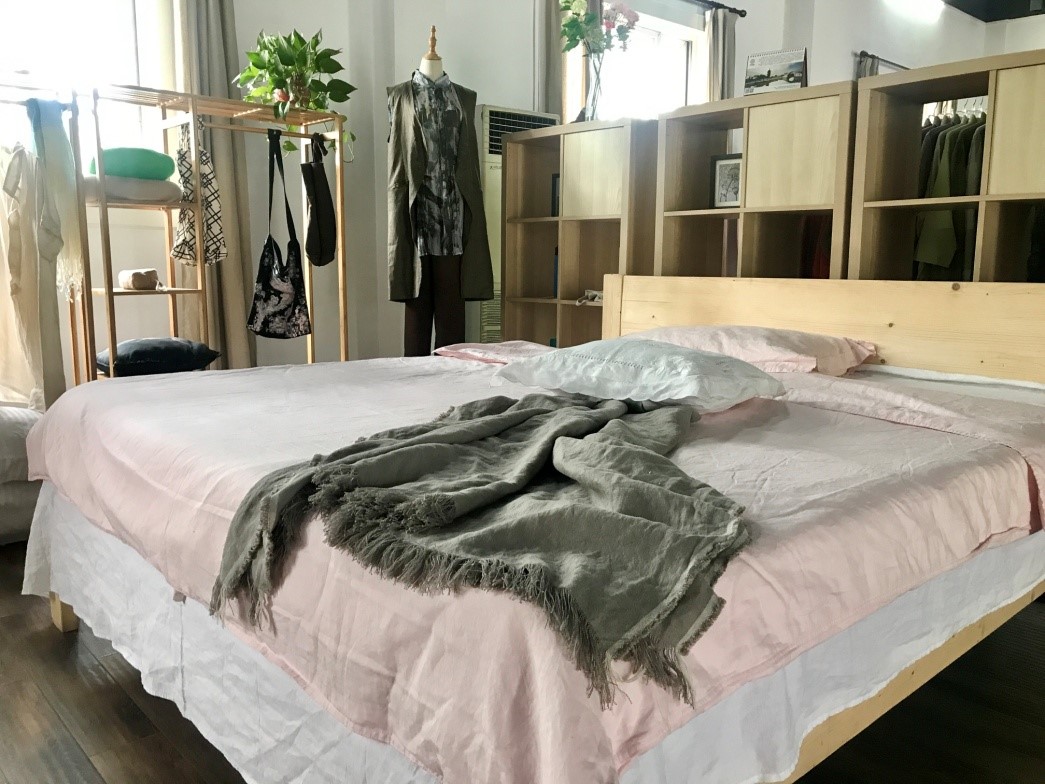 為此,新申將廠區(qū)舊廠房改造翻新,提供辦公場地、新品展廳、服裝設(shè)計、打樣等一條龍服務(wù)。升級打造麻印象主題酒店,為入駐創(chuàng)客提供休息場地。創(chuàng)客帶動亞麻銷量,實現(xiàn)1+1>2。