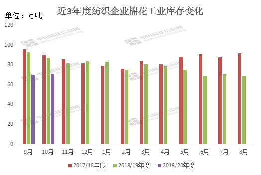 10月紡織市場回暖,但需求沒有明顯改善,市場信心仍略顯不足。據(jù)中國棉花預(yù)警信息系統(tǒng)對全國90余家定點紡企調(diào)查顯示,紡企原料庫存略有上升,紡織品產(chǎn)量環(huán)比略增,紗線庫存下降,布庫存下降。