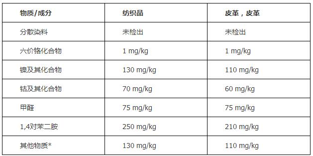 提案涉及如下產(chǎn)品:在正?;蚝侠砜深A(yù)見的使用條件下與皮膚接觸的任何衣物、相關(guān)配件及衣物以外的物品,如床單、毯子、室內(nèi)裝飾品(織物覆蓋的椅子、扶手椅和沙發(fā)、汽車座椅等)、坐墊套、浴袍、毛巾、可重復(fù)使用的尿布和衛(wèi)生巾、睡袋、供最終消費者使用的紗線和織物、包(如手袋、背包、公文包)、地毯、墊子、時尚配飾(如手表帶、項鏈、手鐲等)和鞋類(包括內(nèi)底)。