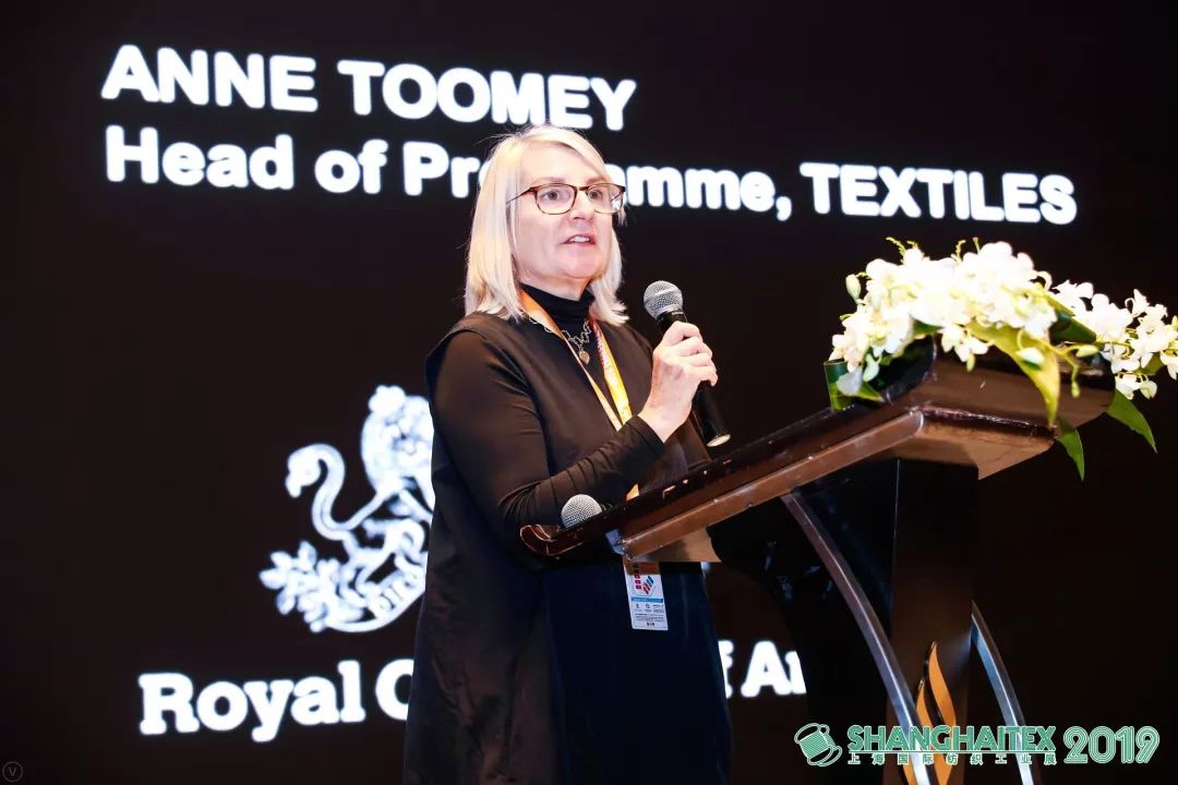 接著皇家藝術(shù)學院紡織設(shè)計系系主任-Anne Toomey教授以“軟系統(tǒng):工業(yè)4.0為時尚重新定義” 為演講主題,分享了人工智能的發(fā)展如何將時尚,紡織,先進機器人,計算機科學、生物設(shè)計及先進材料等各領(lǐng)域融合,為我們創(chuàng)造和傳達未來時尚的方式邁進新一步。