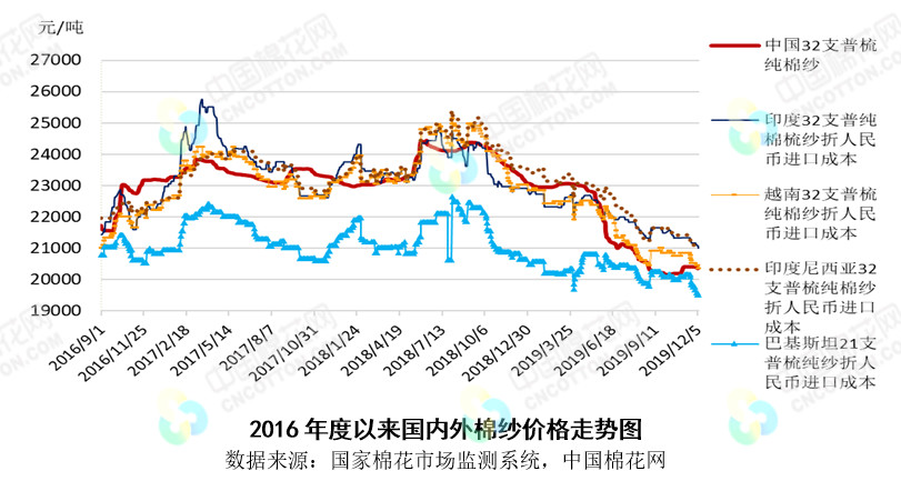 四、國(guó)內(nèi)外棉紗價(jià)格延續(xù)弱勢(shì)