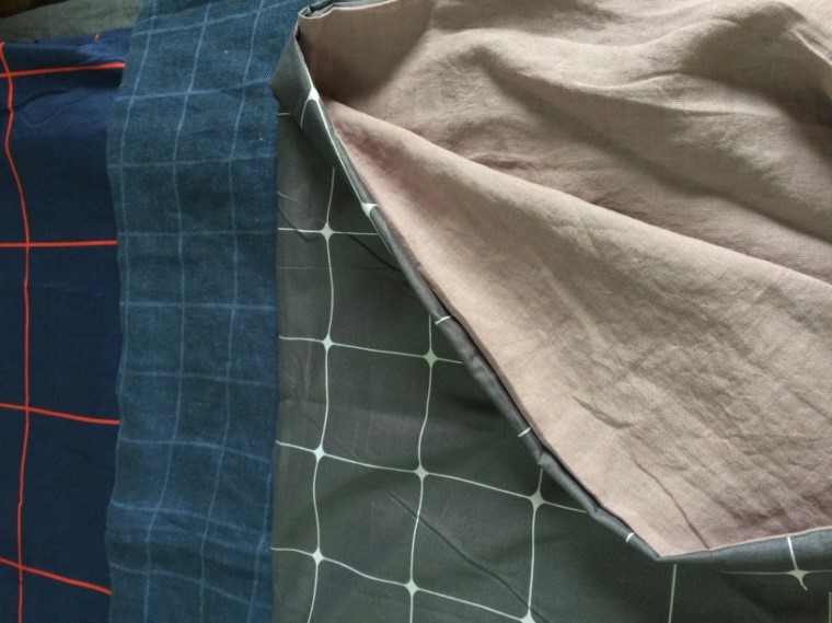 AB雙面面料,通過(guò)雙層組織的運(yùn)用配合紗線和整理,正反兩面連接緊密。但風(fēng)格卻不同??梢宰龅揭幻媸孢m亞麻,一面亮麗絲綢或化纖。一面用來(lái)貼近肌膚,一面作為外用。
