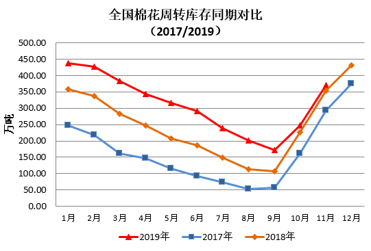 一、內(nèi)地商品棉周轉(zhuǎn)庫存下降