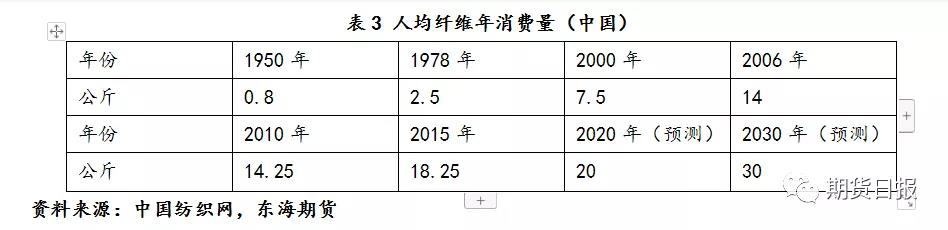 近年來(lái),人均纖維消耗量從10公斤和20公斤再到未來(lái)30公斤,越來(lái)越多化纖服裝進(jìn)入生活,目前發(fā)達(dá)國(guó)家人均纖維消耗量30公斤左右,我國(guó)也在發(fā)展過(guò)程中?;w的價(jià)格優(yōu)勢(shì)長(zhǎng)期存在、多樣性適合下游多種需求,占據(jù)下游90%左右市場(chǎng)份額,預(yù)計(jì)2020年滌綸短纖、粘膠短纖等化纖產(chǎn)品將繼續(xù)搶占純棉市場(chǎng)份額。