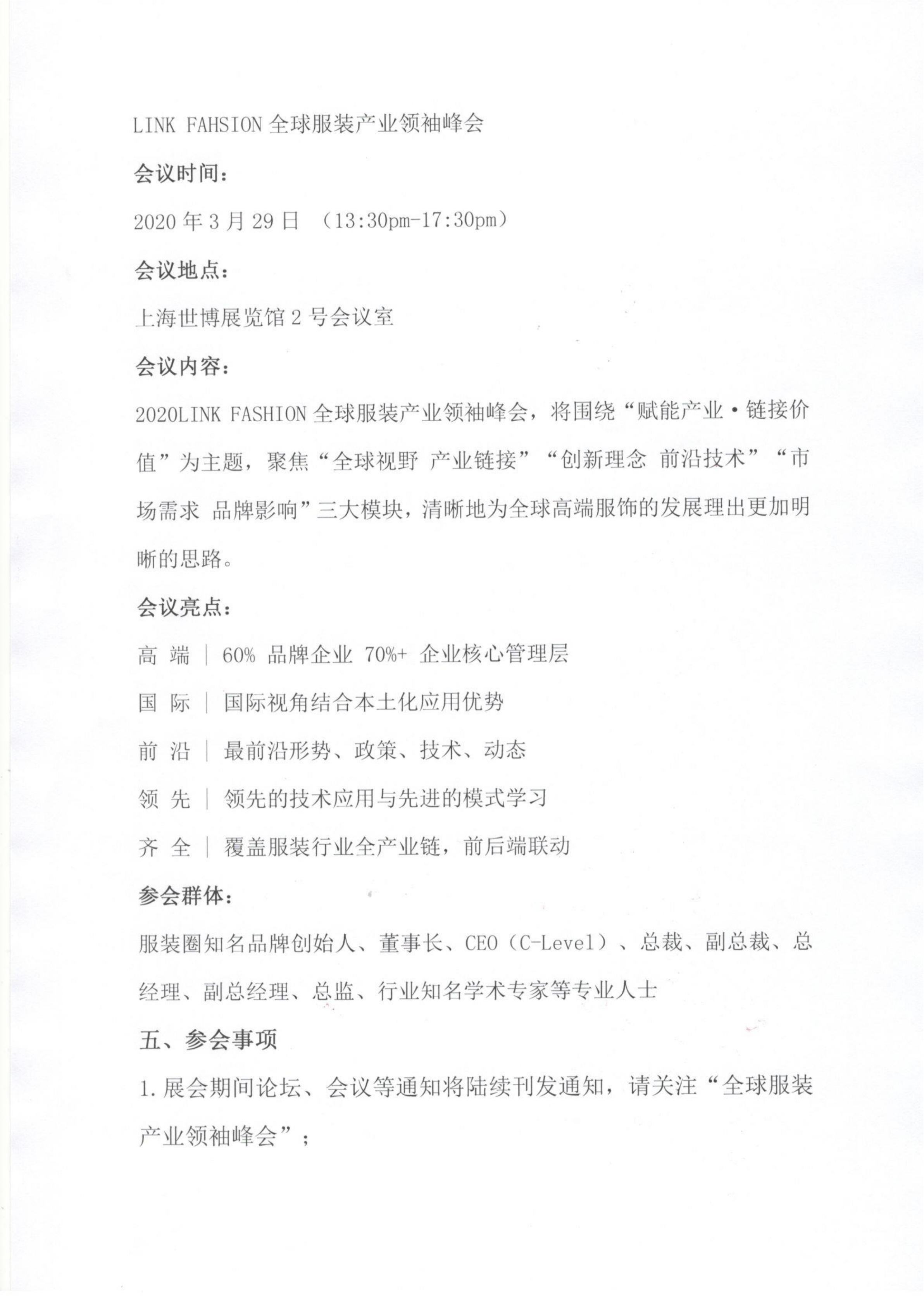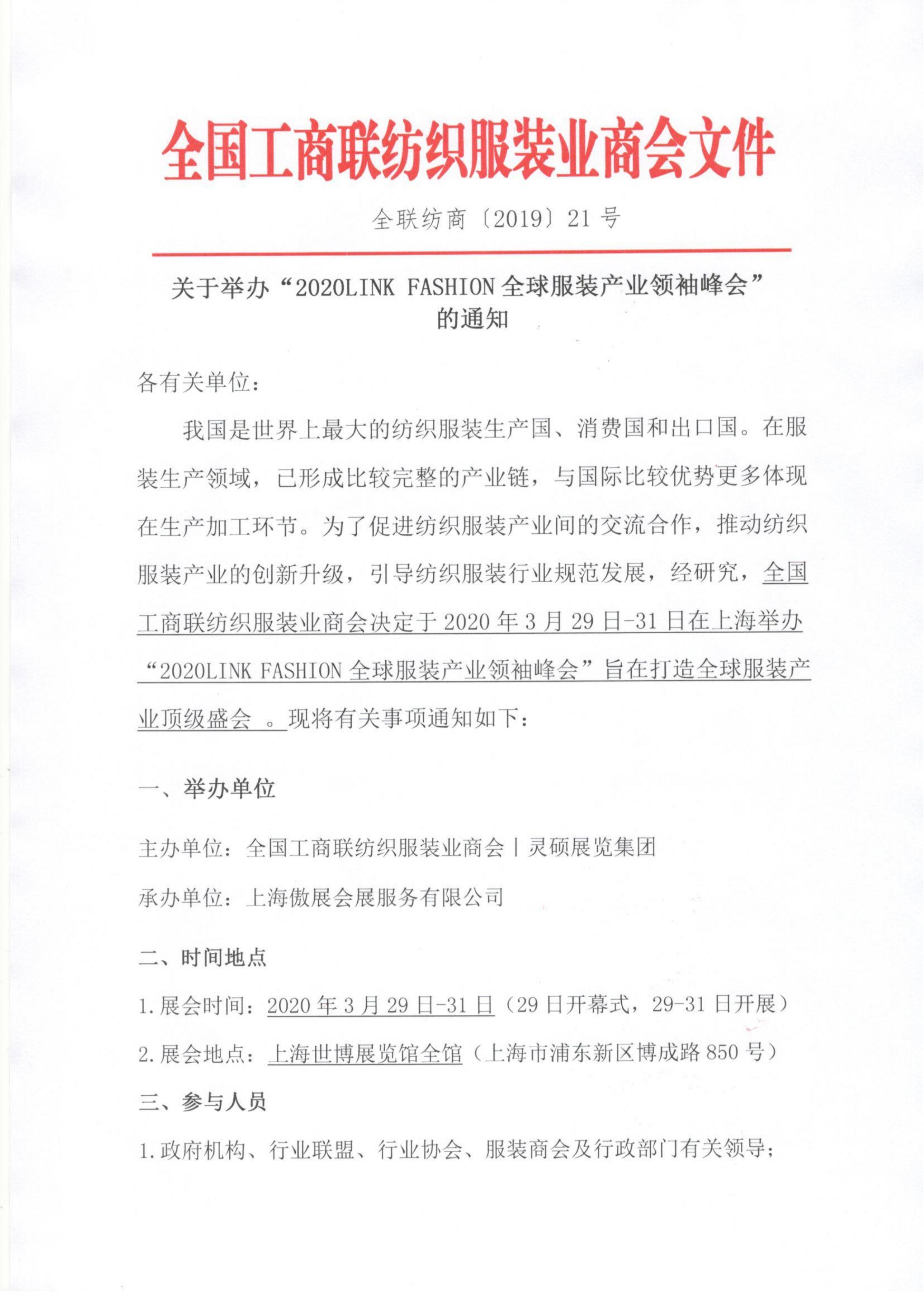 關(guān)于舉辦“2020LINK FASHION全球服裝產(chǎn)業(yè)領(lǐng)袖峰會”的通知