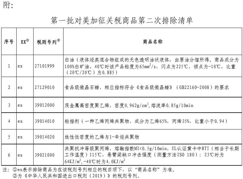 附件:第一批對(duì)美加征關(guān)稅商品第二次排除清單