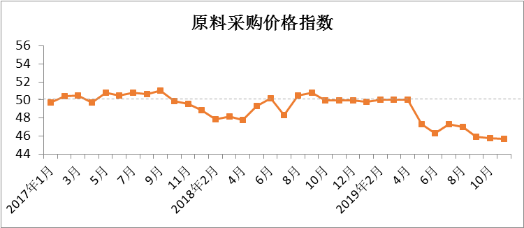 11月原料采購價格指數(shù)45.71,與10月相比下降0.05。11月中上旬,國內(nèi)外棉花價格區(qū)間內(nèi)頻繁波動,11月下旬,美國對中國產(chǎn)品新一輪增加關(guān)稅預(yù)計難以取消的消息再次刺激了市場,國內(nèi)外棉價紛紛下跌,但整體均價高于10月。具體數(shù)據(jù),CotlookA指數(shù)平均值74.86美分/磅,環(huán)比上漲1.06美分/磅;國內(nèi)3128B級棉花現(xiàn)貨均價12894元/噸,環(huán)比上漲247元/噸?;w短纖方面,11月上旬,粘膠短纖價格基本平穩(wěn),中旬開始報價下調(diào),下旬保持平穩(wěn)。滌綸短纖價格整體呈下降趨勢,主要受聚酯原料影響。具體數(shù)據(jù),主流粘膠纖維均價10365元/噸,環(huán)比下降355元/噸;1.4D直紡滌綸短纖均價6744元/噸,環(huán)比下降343元/噸。12月,棉花價格隨中美貿(mào)易波動,粘膠短纖價格跌至萬元內(nèi),為近十年最低,滌綸短纖價格回升。
