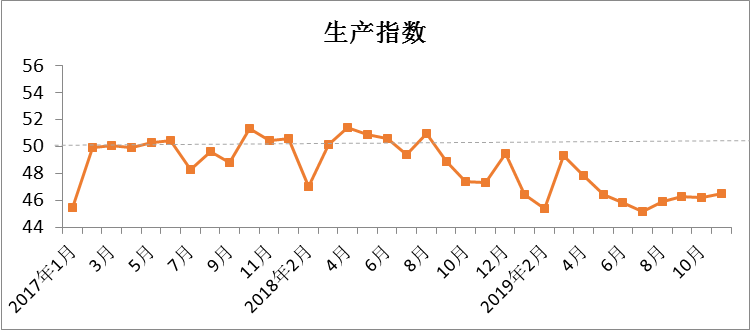 11月生產(chǎn)指數(shù)46.51,與10月相比上升0.33。11月棉紡織企業(yè)正常開工,生產(chǎn)天數(shù)高于10月份。根據(jù)中棉行協(xié)調(diào)研了解,大型企業(yè)基本滿負荷生產(chǎn),中小型企業(yè)開工率維持在70%以上。11月,織廠開工情況較10月好轉(zhuǎn),坯布產(chǎn)量環(huán)比增加,尤其棉混紡布和純化纖布增量較為明顯。巴基斯坦棉紗減免關(guān)稅對我國中低支純棉紗沖擊較大,部分企業(yè)更改產(chǎn)品品種,中低支純棉產(chǎn)品產(chǎn)量上升幅度不高。跟蹤企業(yè)數(shù)據(jù)顯示,11紗產(chǎn)量環(huán)比增加2.75%,布產(chǎn)量環(huán)比增加6.53%。12月,企業(yè)開工情況無明顯下降,部分中小企業(yè)預(yù)計元旦后放假。