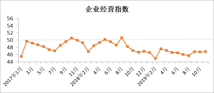11月企業(yè)經(jīng)營指數(shù)46.78,與10月相比上升0.04。11月,雖然部分品種需求有所增加,但市場整體行情依然較淡,棉紗價格在短暫上漲后開始回落,坯布價格繼續(xù)穩(wěn)中有跌,紡織企業(yè)利潤持續(xù)下降。根據(jù)中棉行協(xié)調(diào)研了解,大型企業(yè)春節(jié)放假基本按照國家規(guī)定,部分中小企業(yè)表示元旦后放假。雖近期中美第一階段經(jīng)貿(mào)協(xié)議文本達成一致,但市場不確定性因素依然較大,且市場認為后期談判壓力將越來越大,對于明年市場走勢,多數(shù)企業(yè)表示無法預(yù)測。因此棉紡織企業(yè)希望,國家能提前釋放政策信號,給予市場預(yù)期,減少市場炒作熱度。