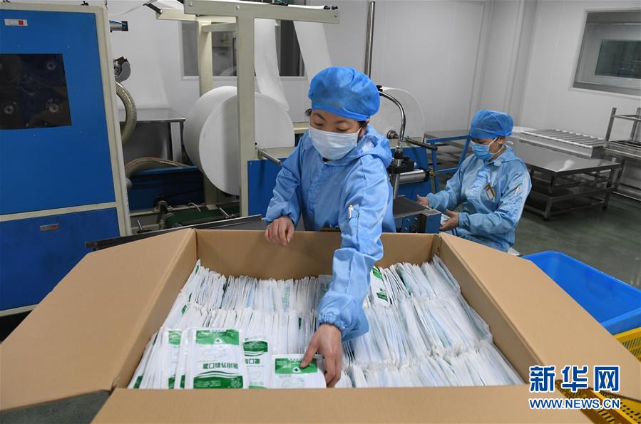 1月29日,在廣西一家醫(yī)療用品公司,工人在將口罩裝箱。近日,位于廣西—東盟經(jīng)濟(jì)技術(shù)開發(fā)區(qū)的一家醫(yī)療用品公司召回員工加班加點生產(chǎn)口罩,以保障供應(yīng)。據(jù)介紹,新型冠狀病毒感染的肺炎疫情發(fā)生前,這家公司口罩日產(chǎn)量為10萬只,現(xiàn)在口罩日產(chǎn)量已達(dá)16萬只。目前,公司正向社會招聘員工,計劃繼續(xù)擴(kuò)大口罩產(chǎn)量。