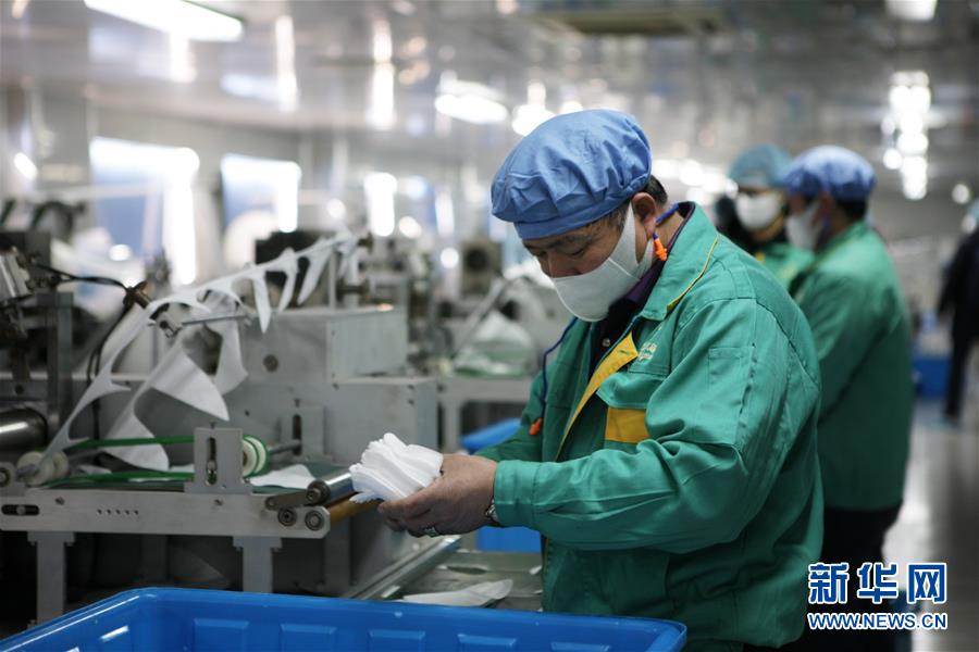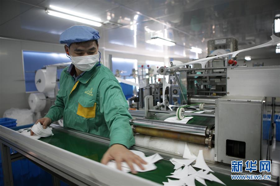 1月31日,位于上海市松江區(qū)的上海大勝衛(wèi)生用品制造有限公司加班趕制口罩,為防控新型冠狀病毒感染的肺炎疫情提供保障。
